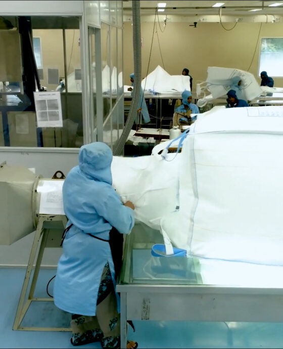Jumbo Bag produces food and pharmacy application FIBCs from its state-of-the art Clean Room facility to fulfill stringent customer requirements. The facility is well integrated from fabric stage to packing and is fully air conditioned with controlled atmosphere. The complete plant is maintained at most hygienic conditions to adhere to universal standards such as AIB, BRCGS, ISO 22000, etc.