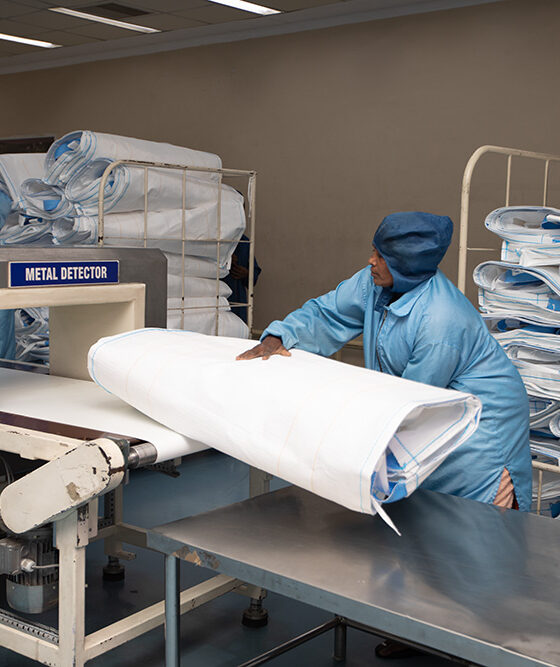 All the raw materials and lubricants are approved for direct food contact to meet food and pharma requirements. The Clean Room is equipped with world-class equipment such as ultrasonic cutting, slitting, and punching to achieve cleaner cut edges without any plastic burns. All sewing machines are fitted with auto thread cutting (cold and heat) to avoid loose threads. Bag cleaning machines are used to clean the bag by high velocity cleaned air.